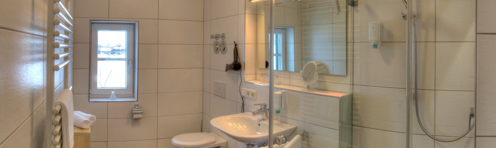 Handtücher, Klopapier, Kosmetiktücher, Seife/Shampooe für Dusche und Waschbecken, Abzieher für Dusche, Zahnputzgläser, Fön, Vergrößerungsspiegel